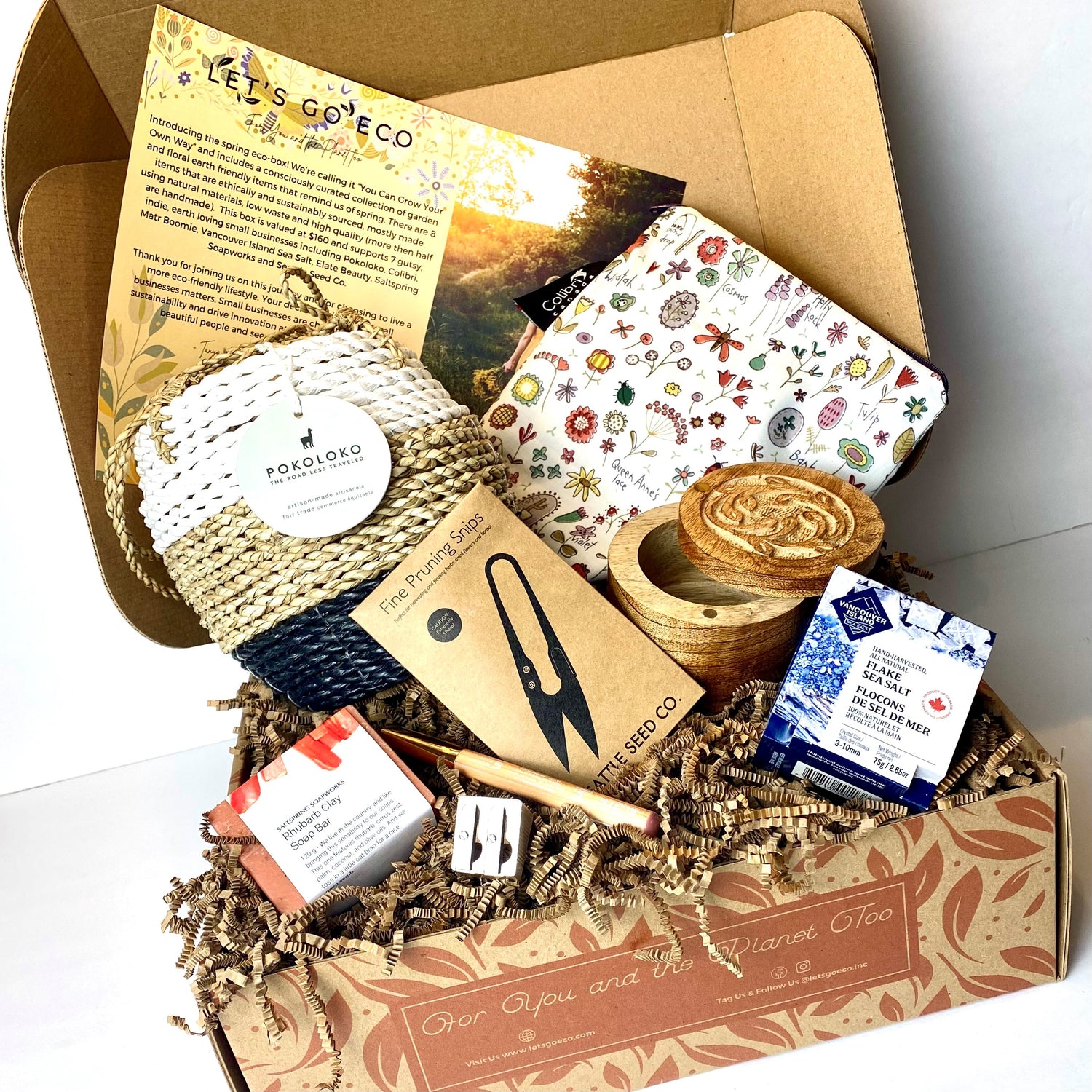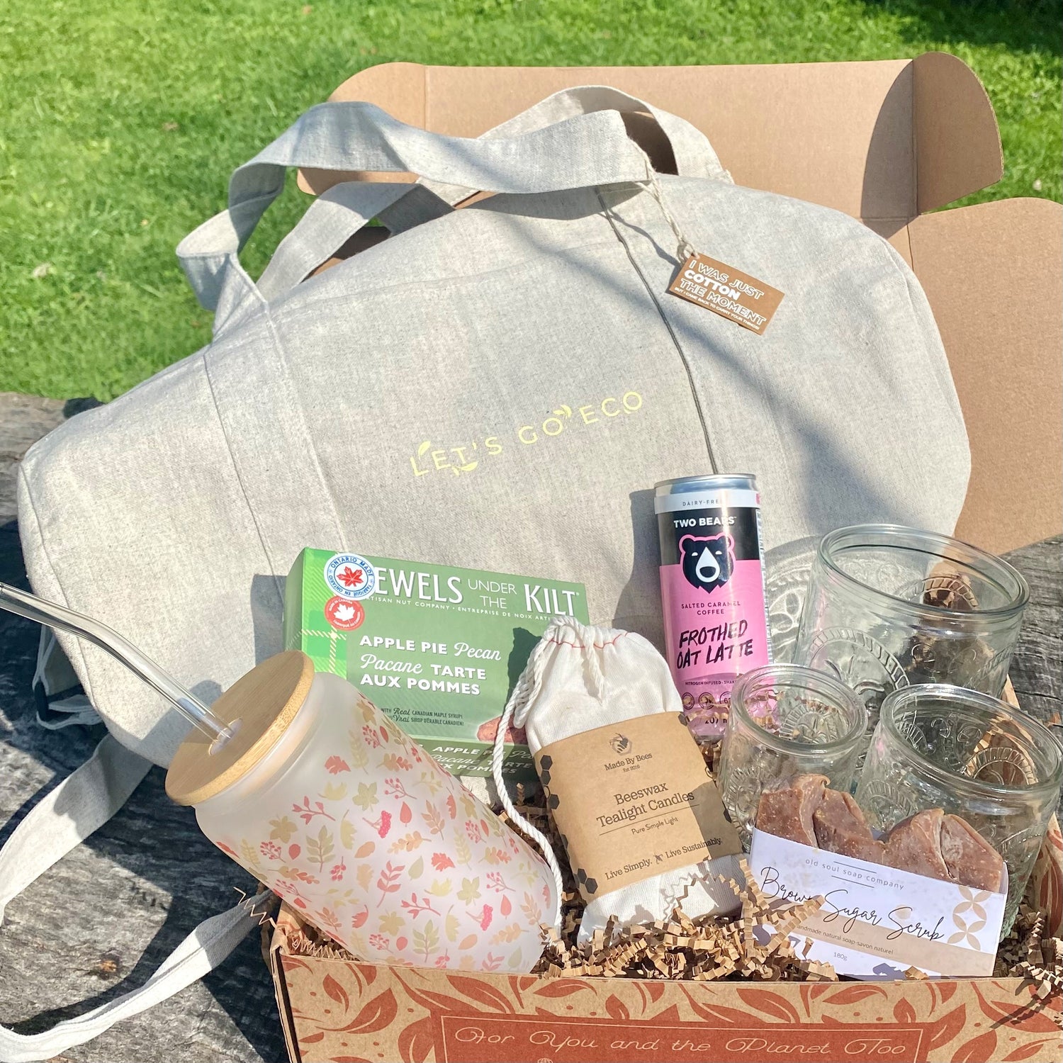 Experience seasonal scents and flavours, handmade quality, low waste, natural and upcycled products from small sustainable businesses. This box supports 6 amazing eco-brands including Savonnerie des Diligences, J&L Naturals, Lake and Oak Teas, Soul Chocolate and Made with Local.